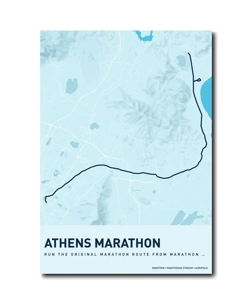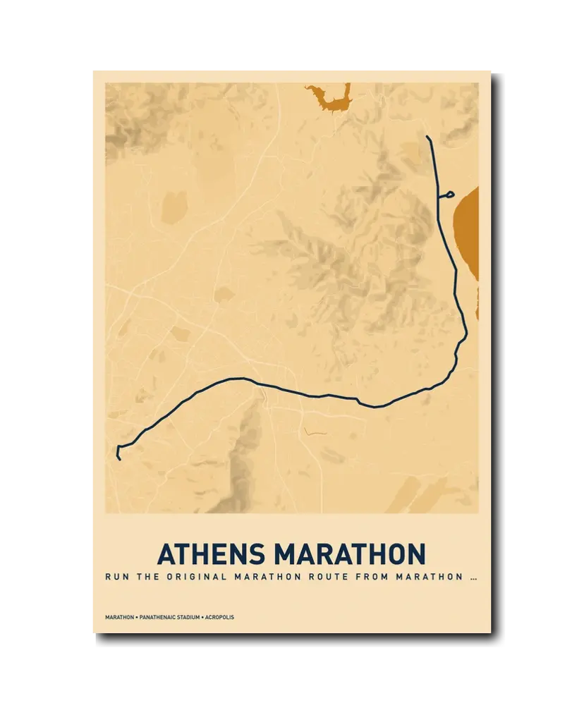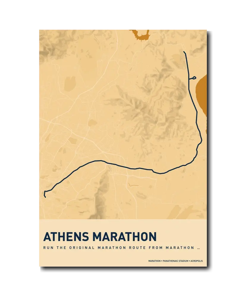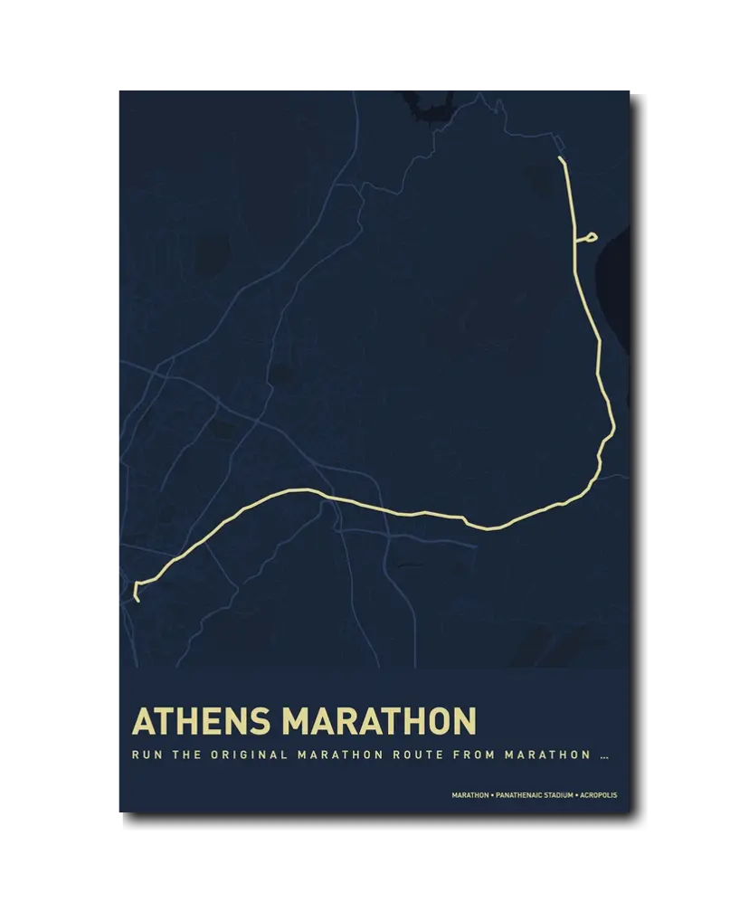 Running the Athens Classic Marathon is running history. Every step carries the weight of 2,500 years of tradition, and the finish inside the marble Panathenaic Stadium is a moment that will stay with you for a lifetime. Let makemap help you preserve that extraordinary achievement with a beautiful custom map poster.