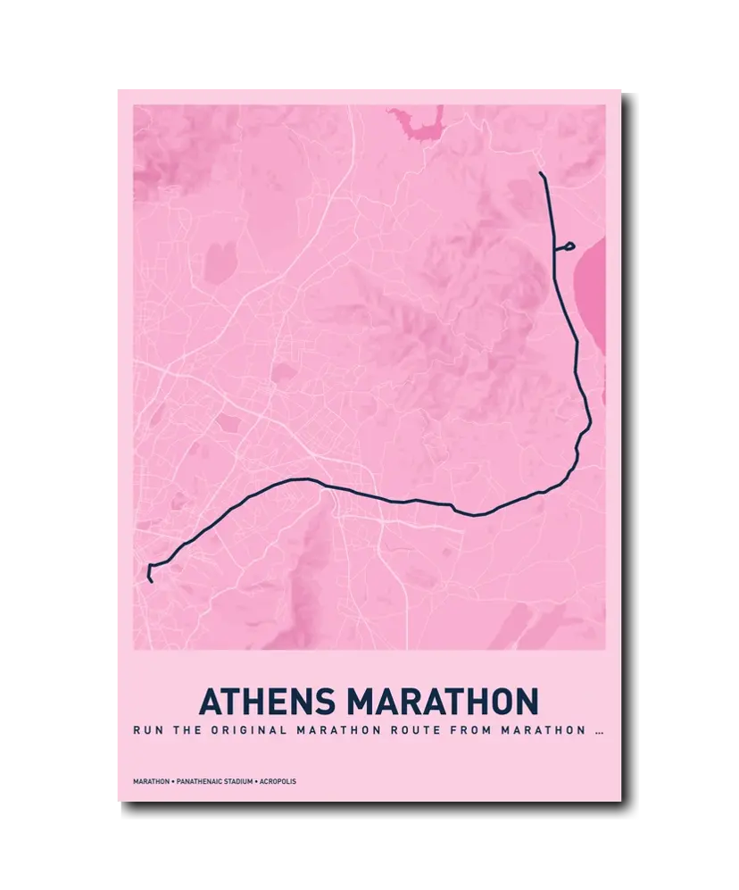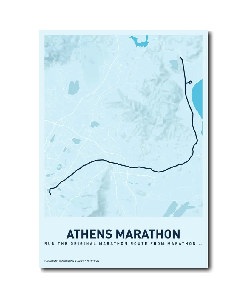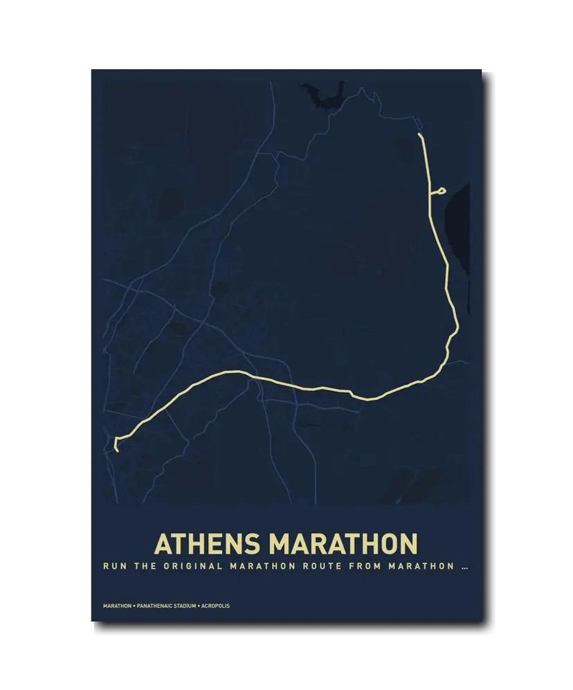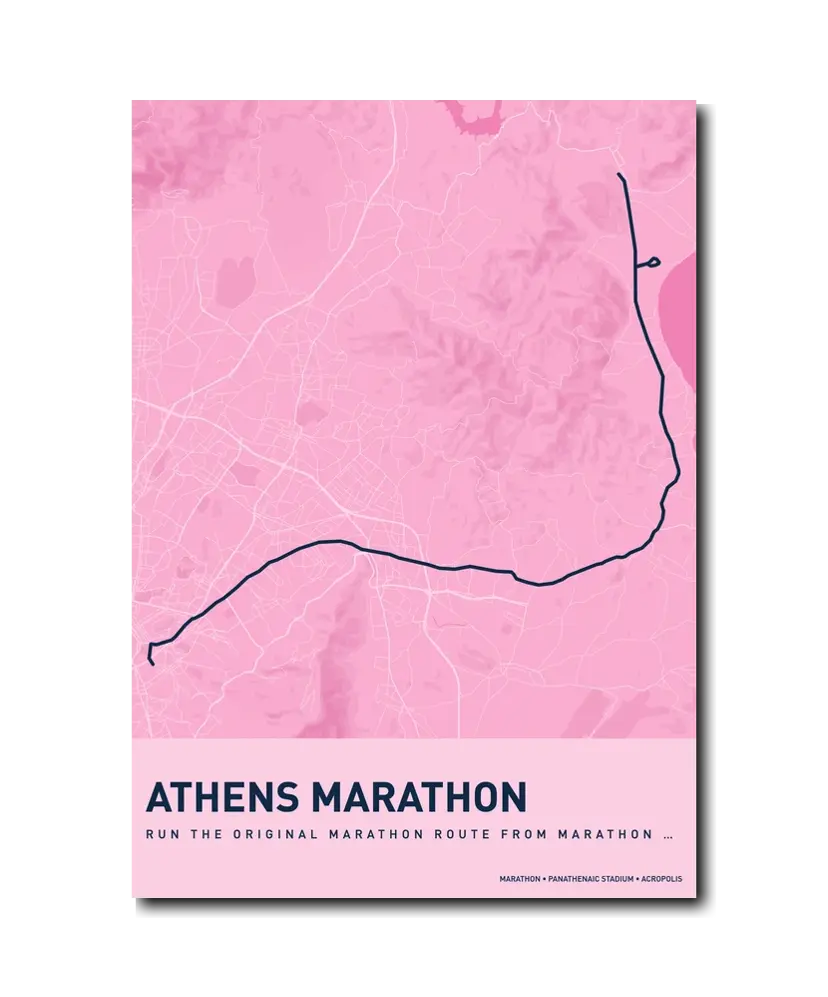 Running the Athens Classic Marathon is running history. Every step carries the weight of 2,500 years of tradition, and the finish inside the marble Panathenaic Stadium is a moment that will stay with you for a lifetime. Let makemap help you preserve that extraordinary achievement with a beautiful custom map poster.