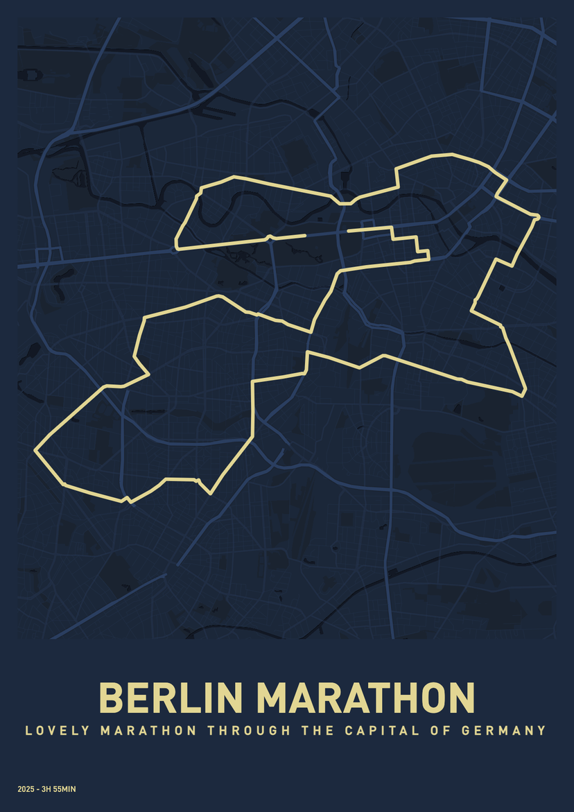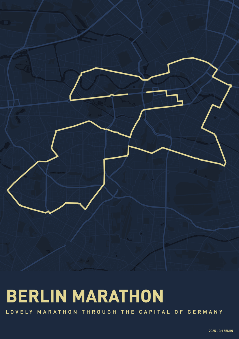 Create a stunning custom map poster of your Berlin Marathon route with makemap. Simply:
