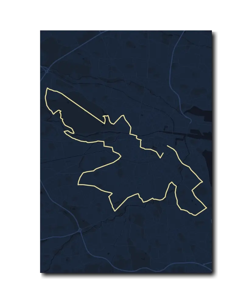 Dublin will steal your heart. From the moment you arrive in this literary, musical, and warmly chaotic city, you'll understand why Dublin Marathon runners keep coming back year after year. Let makemap help you commemorate your achievement with a beautiful custom map poster.