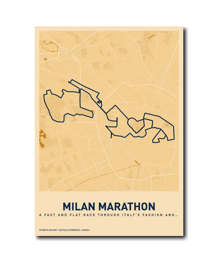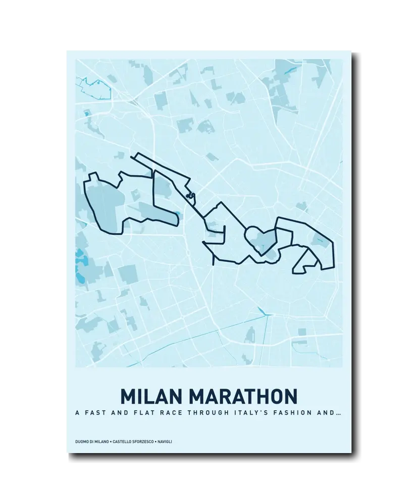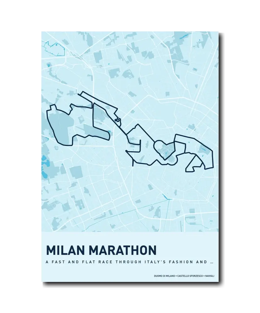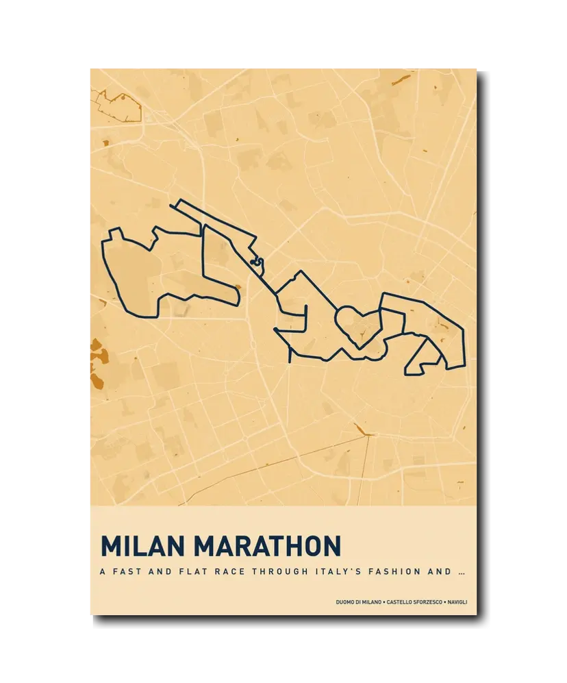 Milan is a city that dresses well, eats magnificently, and celebrates its marathon with true Italian style. From the Duomo at the start to the post-race aperitivo, the day will stay with you long after your legs recover. Let makemap help you commemorate your achievement with a beautiful custom map poster.