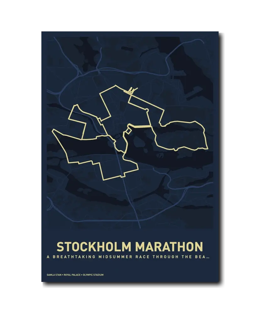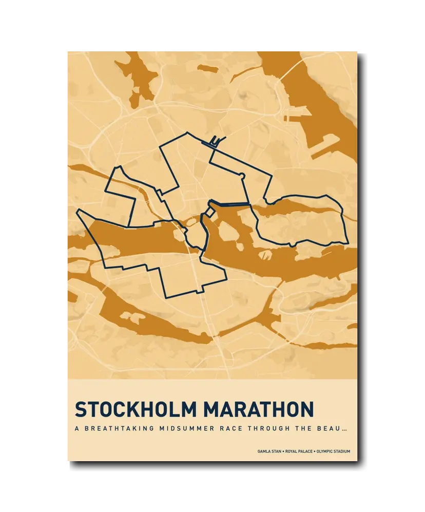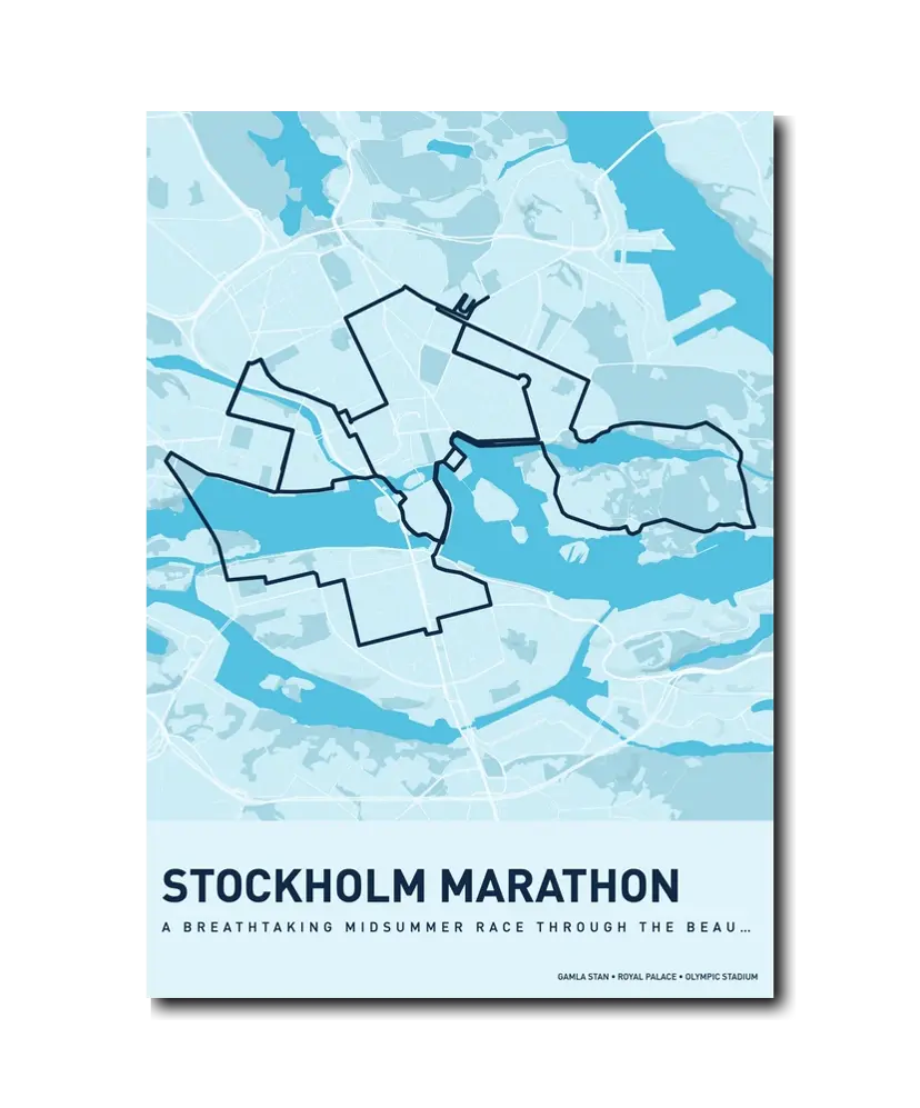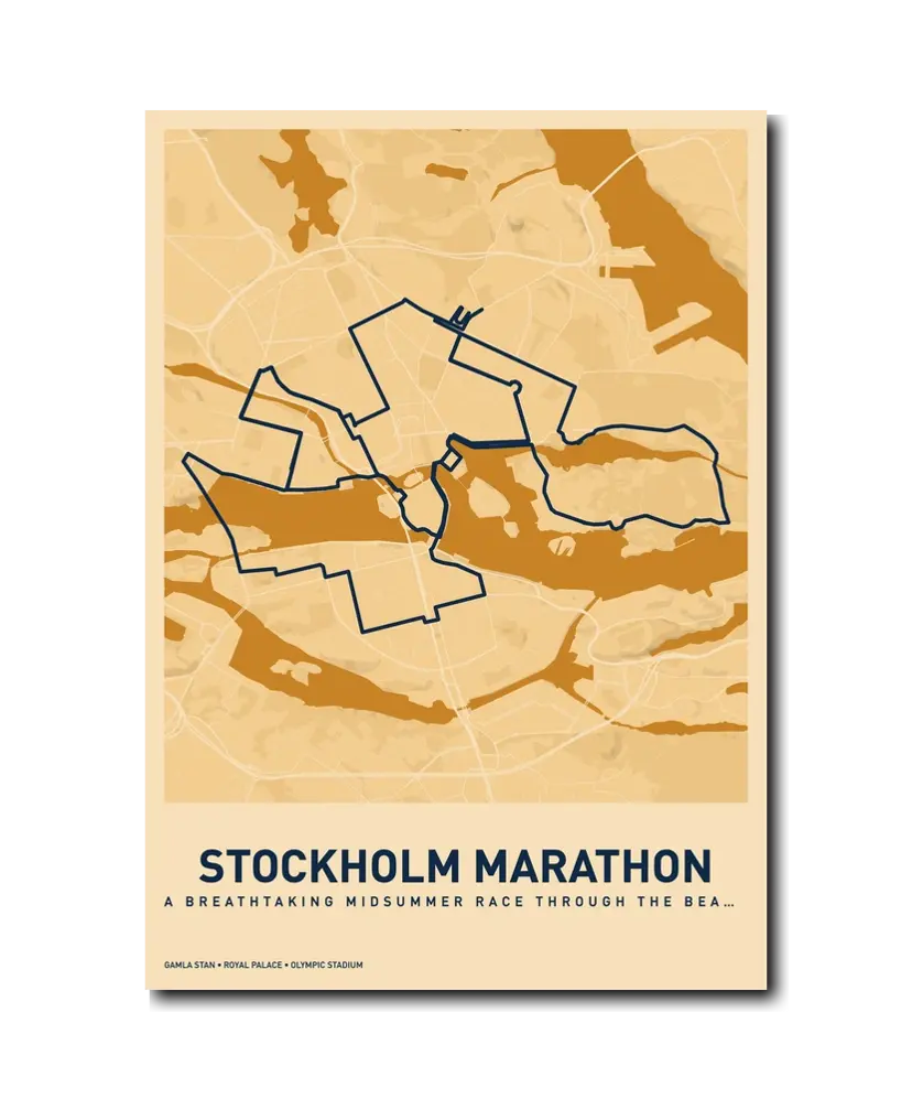 Stockholm's midsummer marathon is an experience that transcends sport. The golden light, the water views, the historic Olympic Stadium — it all comes together in a race that reminds you why you fell in love with running. Let makemap help you commemorate your Stockholm Marathon achievement with a beautiful custom map poster.